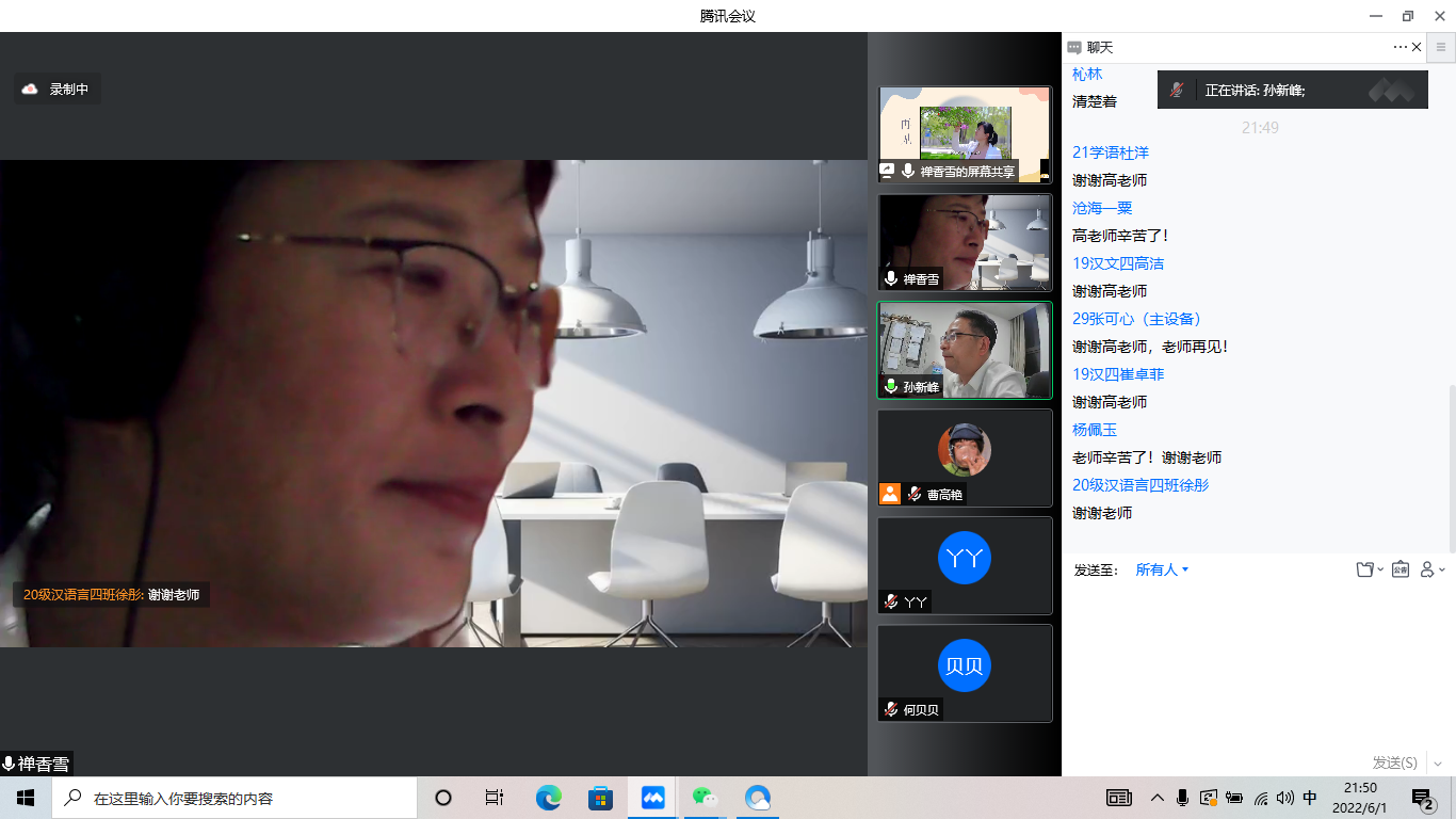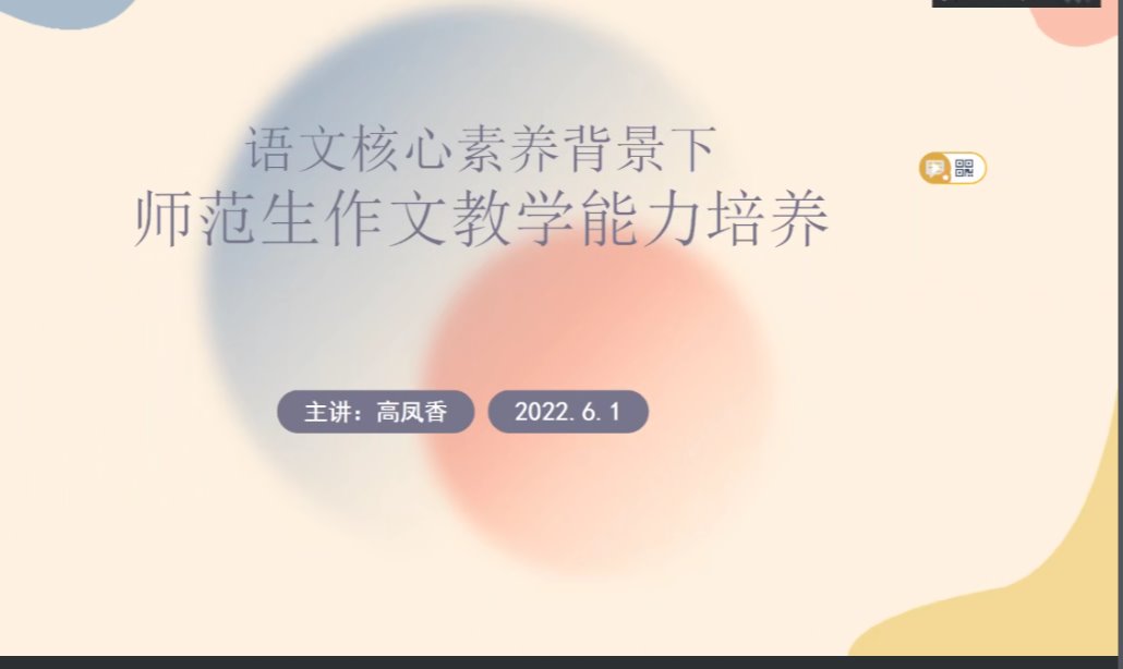 2022年6月1日晚19:30, 作为公司聘请的语文学科教育专业硕士生校外导师,陕西省杨凌区高级中学高凤香老师以腾讯会议的方式为公司作了题为《语文核心素养背景下师范生作文教学能力培养》的学术报告。英国365集团官网副经理孙新峰主持本次会议。公司部分研究生导师、校外50余名中学教师,以及公司30余名学科教学(语文)专业硕士、130余名汉语言文学专业本科生在线聆听了本次学术讲座。