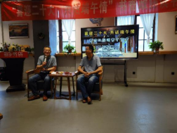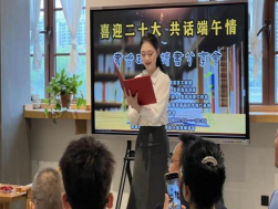 书香读书协会主席吴文博老师致辞后,基地核心成员王渭清老师与宝鸡市职工作协主席白麟老师共话端午正式拉开了活动序幕,两位老师先后讨论端午由来、屈原的爱国主义情怀等,旁征博引又深入浅出,对端午进行了系统诠释。基地成员魏育龙老师洞箫演奏《端午》时而低沉呜咽,时而雄壮有力,如歌如诉,以艺术的形式对端午进行了自己的演绎。他们的解读与演绎,使与会者对端午这一非物质文化遗产的认识更加深广。推广团队张郭志朗诵《满江红》,尹芯爱和乐正阳同学朗诵《那只钢笔》,诵至动情处慷慨激昂、铿锵有力,受到与会嘉宾的一致好评。