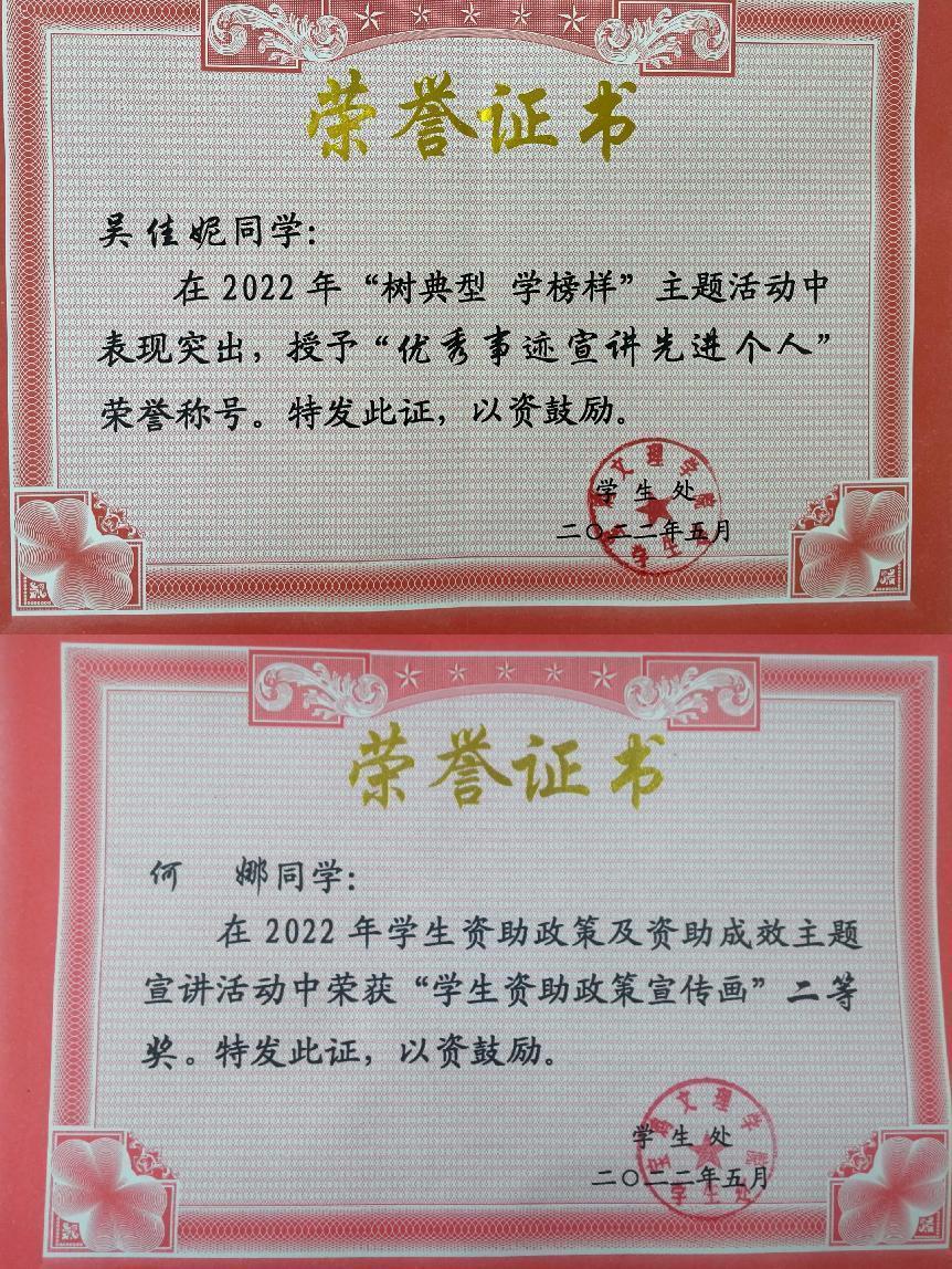 为大力弘扬校园创先争优文化,精选优育先进典型,持续强化示范效应,进一步宣传国家资助政策,公司组织开展“树典型学榜样”主题教育系列活动,英国365集团官网在此次活动中荣获多项佳绩。春种田苗夏籽耘,秋收大有民同欣。公司积极部署,扎实推进,获“优秀组织单位”荣誉称号;2019级广告学吴佳妮同学获优秀事迹宣讲“先进个人”荣誉称号;2020级汉语言文学2班何娜同学的员工资助政策宣传画《倾心助学,倾力助梦》获二等奖。