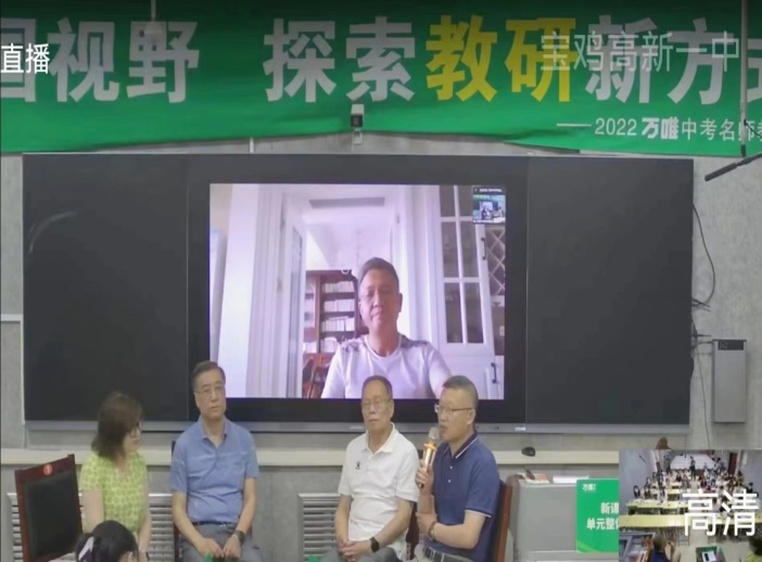 本次会议采取线上和线下相结合的方式,在上午的会议上,宝鸡市教育局、市教研室、高新区教育局等单位领导出席开幕式,高新第一中学董事长吴文博致辞,宝鸡市教育局副局长王伟波和宝鸡教育学会会长曹公奇分别发表讲话。接着,南京溧水区教育学会会长、正高级教师黄本荣做了题为《单元整体教学的实践探索》的报告(线上),宝鸡市教育学会会长、陕西省首批教学名师曹公奇做了《大单元整体教学探究》的报告。两位老师均从理论与实践两个方面对“单元整体教学”作了详细分析与指导,内容充实,让在座研究生学子收获丰富。