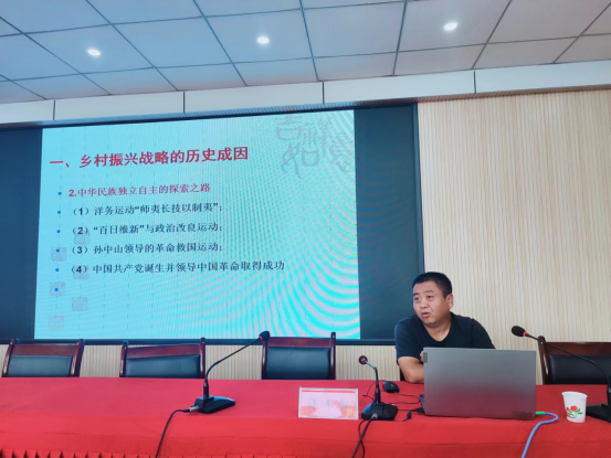 仵军智副教授近年来一直进行关中西部地区乡村社会与文化问题研究,立足田野调查进行学术探索。本次培训会以《乡村振兴战略的历史成因与本质内涵》为题,用时两个小时,从乡村振兴战略的提出背景、近代以来关中西部乡村社会变迁、乡村振兴战略中的核心概念、内涵等方面进行解读,并就当前乡村振兴战略实施过程中出现的问题进行分析,提出自己看法和建议。培训报告得到与会干部和乡镇领导的肯定与一致好评。(文图/仵军智 审核/兰拉成)
