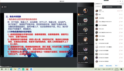 张宏老师用充满激情、富有感染力的语言阐述了班主任的角色要求,班主任需要具有六个意识:教育型管理者意识、学习指导者意识、员工的平等对话者意识、学习者意识、心理工作者意识、家庭教育指导者意识。最后,向师范生传授了班主任工作中角色冲突的解决办法,并对全体师范生送上美好祝愿。