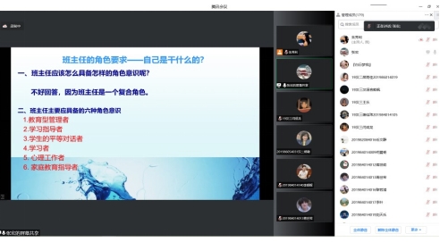 为提升师范生专业素养,培养师范生的班主任工作与班级管理能力,9月9日晚7点半,文传院通过腾讯会议举办“班主任工作与班级管理”线上报告会。陕西省中小学学科带头人、陕西省优秀教学能手、公司语文教育研究中心兼职研究员张宏老师应邀作了题为“做一个专业的班主任”的学术报告。报告会由语文教育研究中心副主任王渭清副教授主持,公司2019级汉语言文学专业本科生,以及2021级与2022级学科教学(语文)专硕研究生180余人聆听了本次报告。