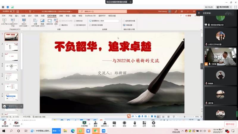 为全面推进研究生教育工作,帮助2022级研究生尽快了解和适应新环境,顺利完成角色转换,快速融入研究生生活,9月15-18日,文学与新闻传播公司党政领导、学科带头人、教授、博士、教研标兵老师齐上阵,彰显主旋律,突出学术性,针对性,以线上形式开展了2022级研究生系列丰富多彩的入学教育活动。
