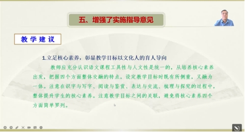 新课标顺应新的时代要求,贯彻素质教育理念,力图体现新的课程观、教材观、教学观和学习观,是语文公司产品改革的指针。在讲座中,曹公奇老师围绕语文课程性质、语文核心素养、语文学习任务群、学业质量标准、实施指导意见这五个方面,结合新教材实际,具体地阐述了新课标新之所在,以及在语文课程中的贯彻实施路径。整个讲解清晰透彻、内容充实、案例生动,对于师范生的语文教学设计能力训练和未来的课堂教学必将起到积极的指导作用。