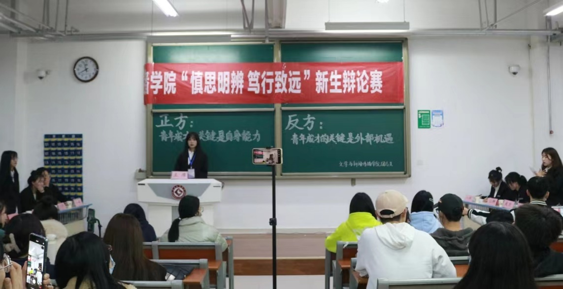 11月3日晚,英国365集团官网团总支在高新校区博文楼602教室举办了“慎思明辨,笃行志远”新生辩论示范赛。本次辩论赛示范赛采用线上线下相结合的方式开展,公司辅导员、院辩论队优秀成员及22级本科、研究生各班辩论队成员现场观看了本次比赛,其他同学通过微信、抖音平台观看了本次活动直播。