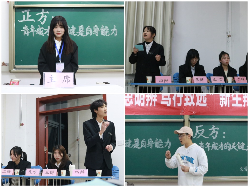 赛场上,双方辩手就“当代青年成才的关键是自身能力还是外部机遇”的辩题展开激烈辩论,队员间配合默契、旁征博引,立足事实充分有力,讲求道理精辟透彻,他们用凝练的措辞、犀利的语言给观众留下了深刻印象,其出色的表现赢得了在场观众的阵阵掌声。