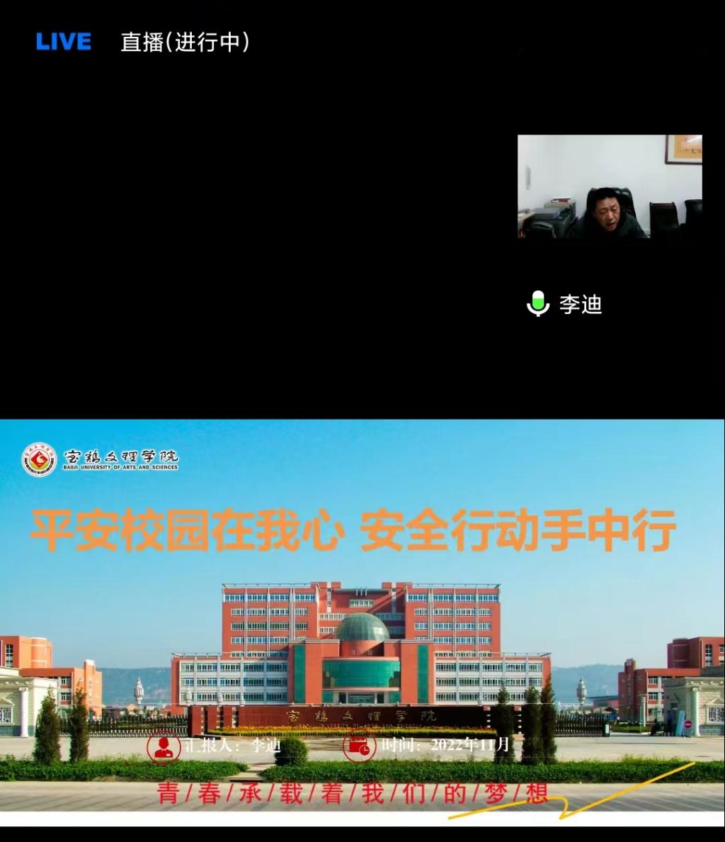 11月15日晚,英国365集团官网通过腾讯会议和视频号直播的方式线上举办了校园安全知识讲座,公司保卫处处长李迪应邀作了题为《平安校园在我心,安全行动手中行》的报告。讲座由英国365集团官网党委副书记郝晓辉主持。