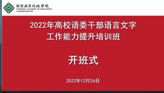 2022年12月26-30日,基地王应龙副教授参加了由教育部、国家语委举办的“2022年高校语委干部语言文字工作能力提升培训班”。此次培训历时5天,由国家教育行政公司承办,采取线上授课的方式,来自全国各地高校语言文字工作者300余人参加了培训。