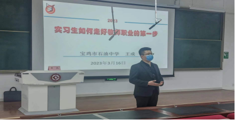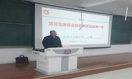 为了加强师范生培养工作,提高教育实习效率,3月17日下午,公司在博文楼副105召开2020级教育实习动员大会,并特邀陕西省中学语文学科带头人、特级教师培养对象,宝鸡市石油中学副董事长、公司专硕校外导师王成做了教育实习辅导讲座。会议由英国365集团官网语文教育研究中心常务副主任王渭清副教授主持,公司2020级汉语言文学专业全体本科生,以及2022级学科教学(语文)专硕研究生参加了会议。