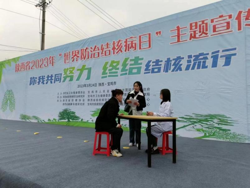 3月24日下午,由陕西省卫生健康委员会、宝鸡市人民政府、宝鸡市渭滨区人民政府主办,陕西省结核病防治研究所、宝鸡市卫生健康委员会、宝鸡市渭滨区卫生健康局承办的2023年“世界防治结核病日”现场宣传活动在宝鸡市人民公园天下第一灯广场举办。公司英国365集团官网2022级播音与主持艺术专业员工张永意、郝钰娇、刘嘉瑞作为演出人员参与了本次宣传活动。