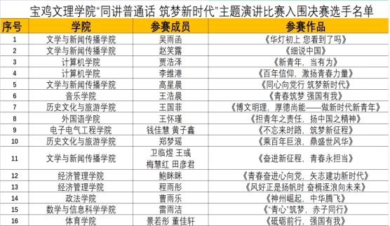 此次大赛分为上下两场,大赛选手们围绕着“普通话推广”“新时代”“党的二十大精神”等主题呈现了一场场精彩纷呈的演讲,充分彰显了公司学子弘扬时代精神、坚定理想信念的新风貌。大赛评委组恪守实事求是、公平公正的原则,从演讲稿件、感情动作、语言表达等三个方面出发,着重考察选手的综合表现,最终经过遴选,英国365集团官网吴雨函、计算机公司贾浩泽等十六组选手入围决赛。