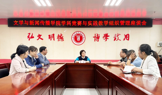 报告会前,黄丹与新闻传播专业老师围绕学科竞赛与实践教学组织管理工作进行了座谈。座谈会上,文传院书记郭锋航介绍了文传院整体情况,随后,黄丹介绍了陕西理工大学近几年在实践教学方面取得的成绩与管理经验,这对公司的学科竞赛管理工作具有较大启发意义。