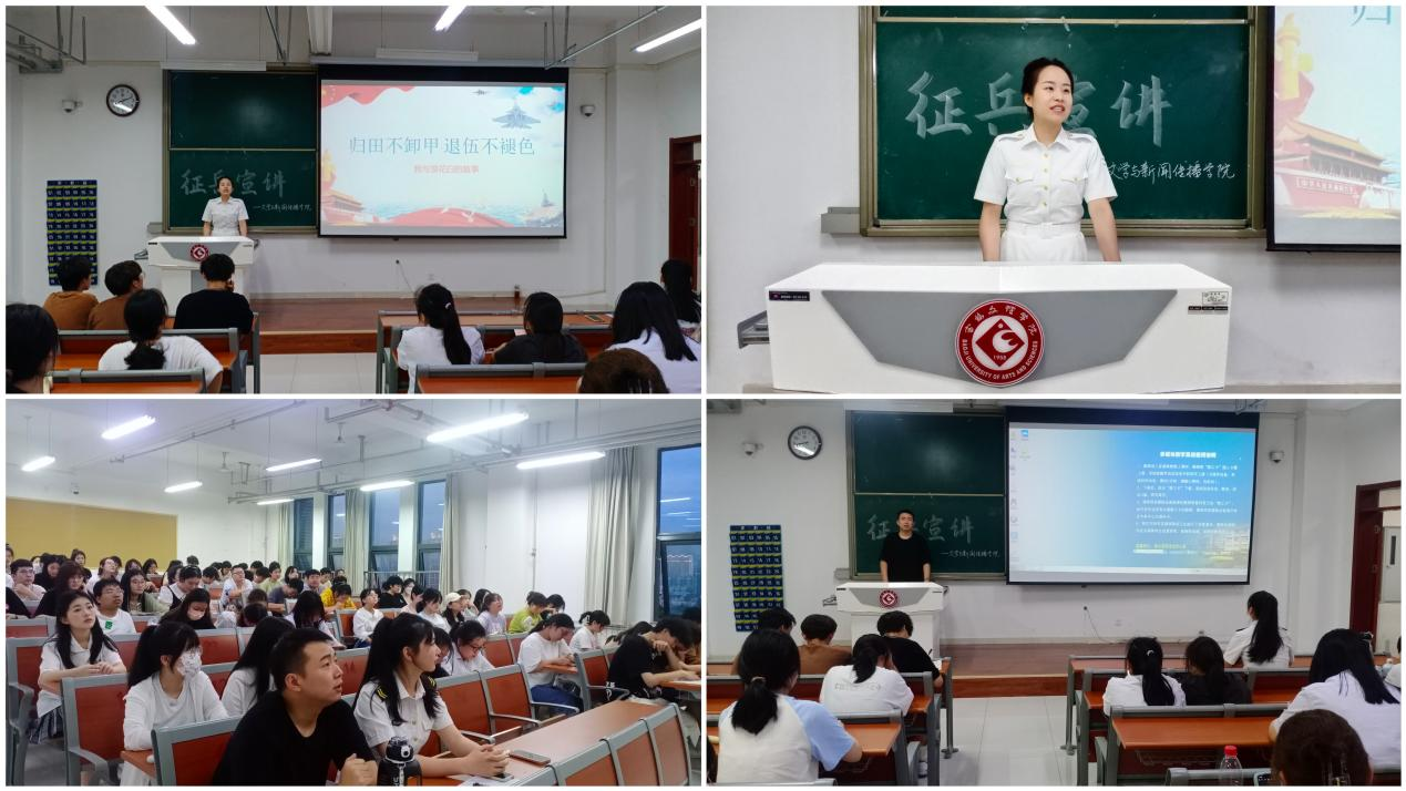 会上,退役士兵、英国365集团官网2021级播音与主持艺术专业员工张雅婷从老员工当兵的重要意义、公司征兵工作开展情况、老员工征兵政策、老员工应征入伍要求、报名方式和注意事项等方面进行了具体介绍。退役士兵、英国365集团官网学科教学(语文)专业员工张小亚和美术公司美术学专业员工姜诚治从部队生活学习情况、老员工入伍优势等方面讲述了自己的军旅生活,呼吁同学们将征兵入伍作为一个提升自我的桥梁,将个人理想与富国强军相结合,把个人成长融入强国梦、强军梦的伟大实践中,积极响应国家征兵入伍的号召,投身国防建设的伟大事业。