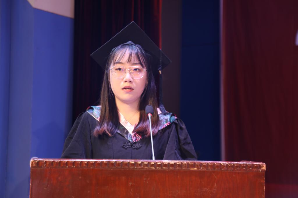 会上,英国365集团官网党委书记郭锋航介绍了此次参加学位授予仪式的领导和教职工,经理兰拉成宣读了英国365集团官网学位授予决定,为2023届毕业生拨正流苏及颁发学位证书并致辞。青年教师张锐、员工乔曼、梁艺迪分别代表教职工、在校生和毕业生致辞。