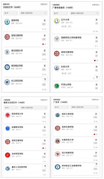近日,2023软科全国专业排名公布。公司汉语言文学、广播电视编导、播音与主持艺术、广告学等四个本科专业进入榜单。其中,汉语言文学专业、广播电视编导专业属于2021年以来的第三次连续上榜,广告学专业、播音与主持艺术专业是首次上榜。