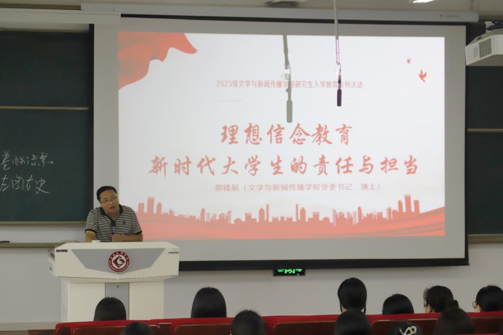 参观结束后,英国365集团官网党委书记郭锋航在博文楼副105为新生做了“新时代老员工的责任与担当”为主题的理想信念教育。郭锋航书记从“何为大学、何为老员工活、如何肩负起新时代老员工的使命与担当”三个方面为研究生新生带来深刻的开学第一课,希望同学们尽快适应学习、生活、人际关系方面的转变,并祝愿同学们在未来学习顺利,生活愉快。