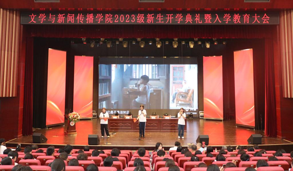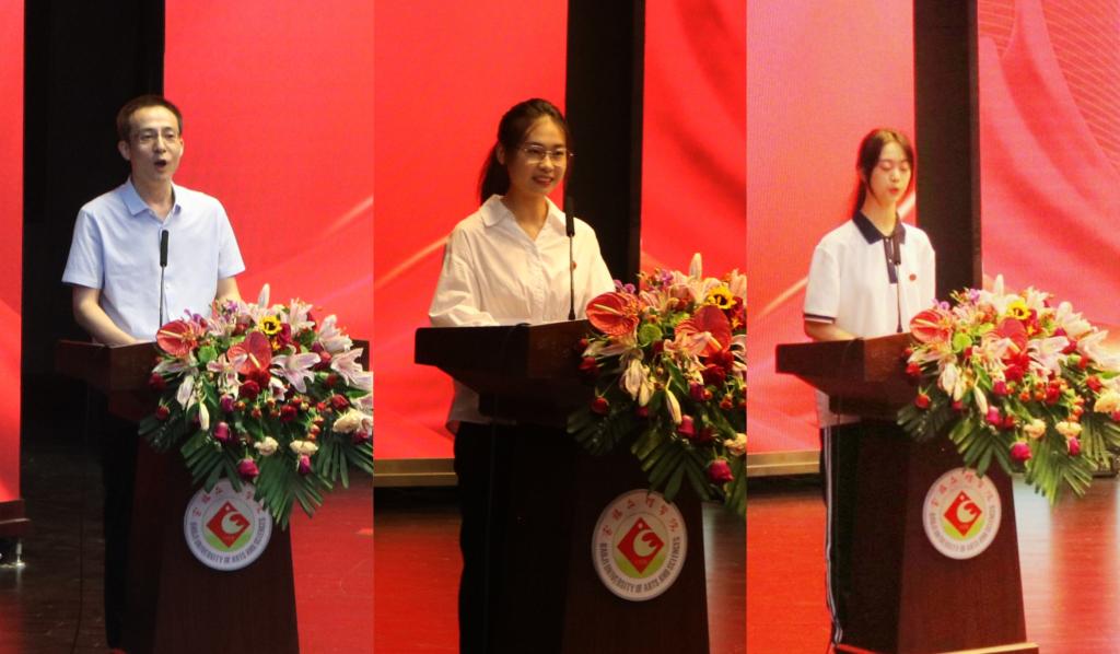 教师代表中文系主任李剑清教授,在校生代表2020级汉语言文学专业员工、国家奖学金获得者刘欢,新生代表2023级新闻传播学类专业员工赵文洁分别发言,为2023级新生送上祝福和希冀。