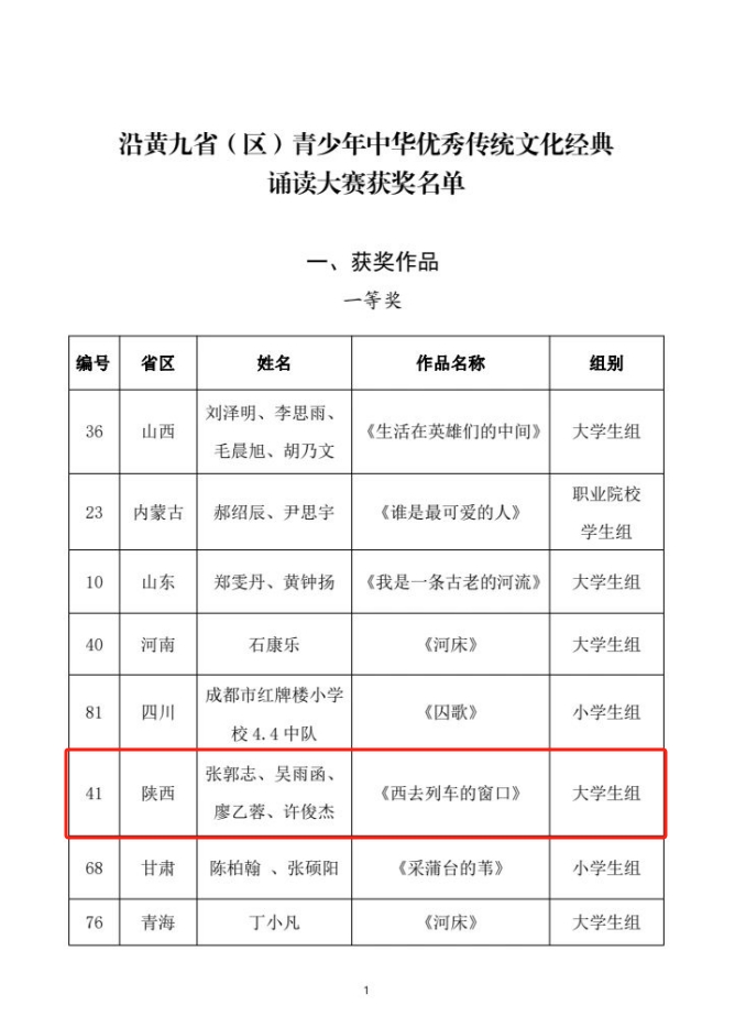 近日,由沿黄河九省(区)党委宣传部、教育厅、文化和旅游厅、团委、妇联、尼山世界儒学中心等单位联合举办的沿黄九省(区)青少年中华优秀传统文化经典诵读大赛落下帷幕,由公司国家语言文字推广基地选报的作品《西去列车的窗口》荣获一等奖,公司获优秀组织单位。
