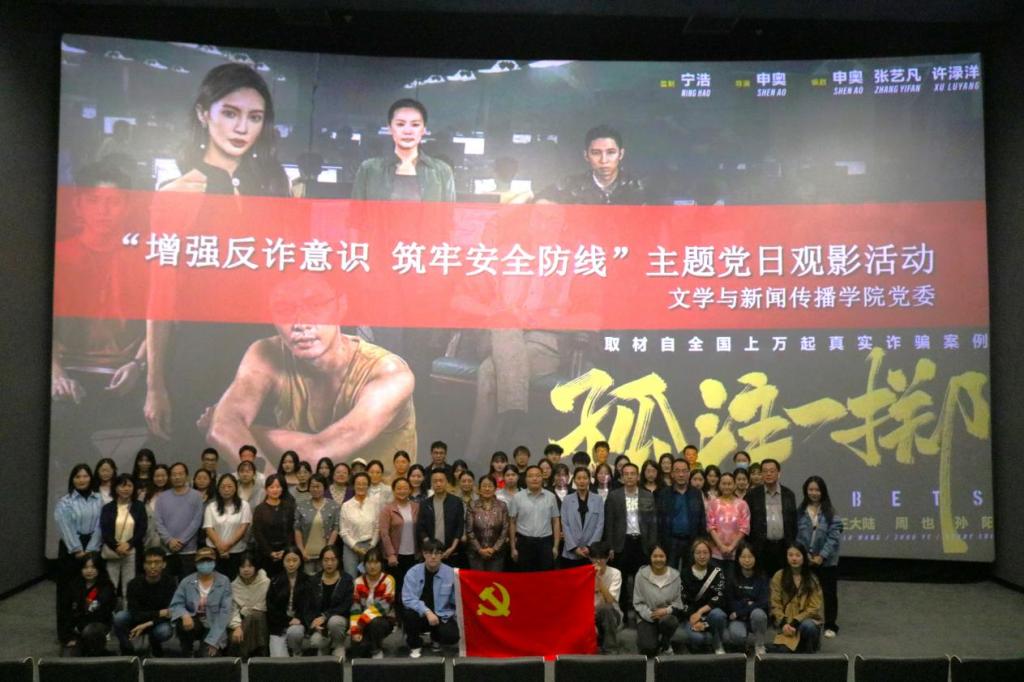 9月27日下午,英国365集团官网在首映电影院举行“增强反诈意识,筑牢安全防线”主题党日活动,共同观看反诈题材电影《孤注一掷》。公司师生党员、各班员工代表100余人参加了此次活动。