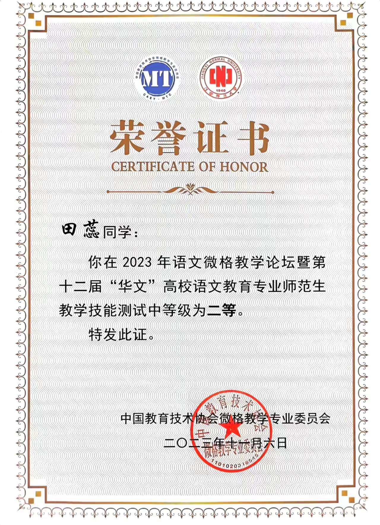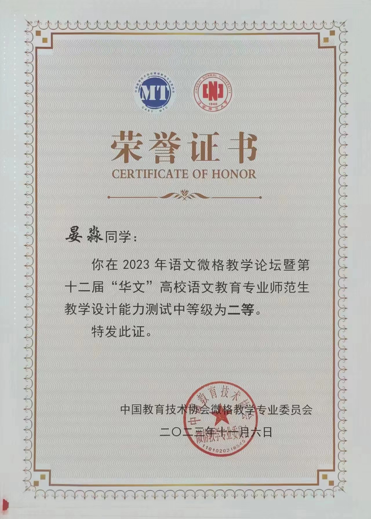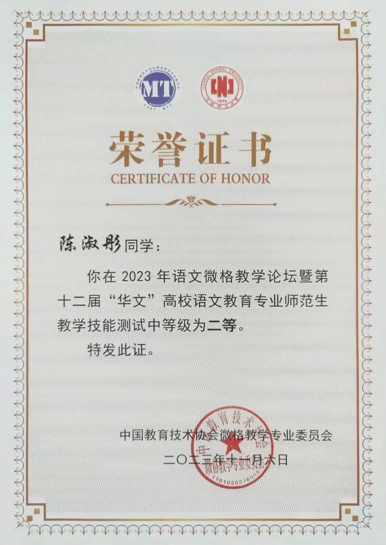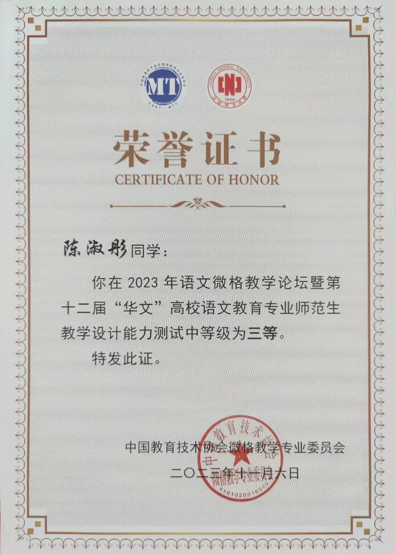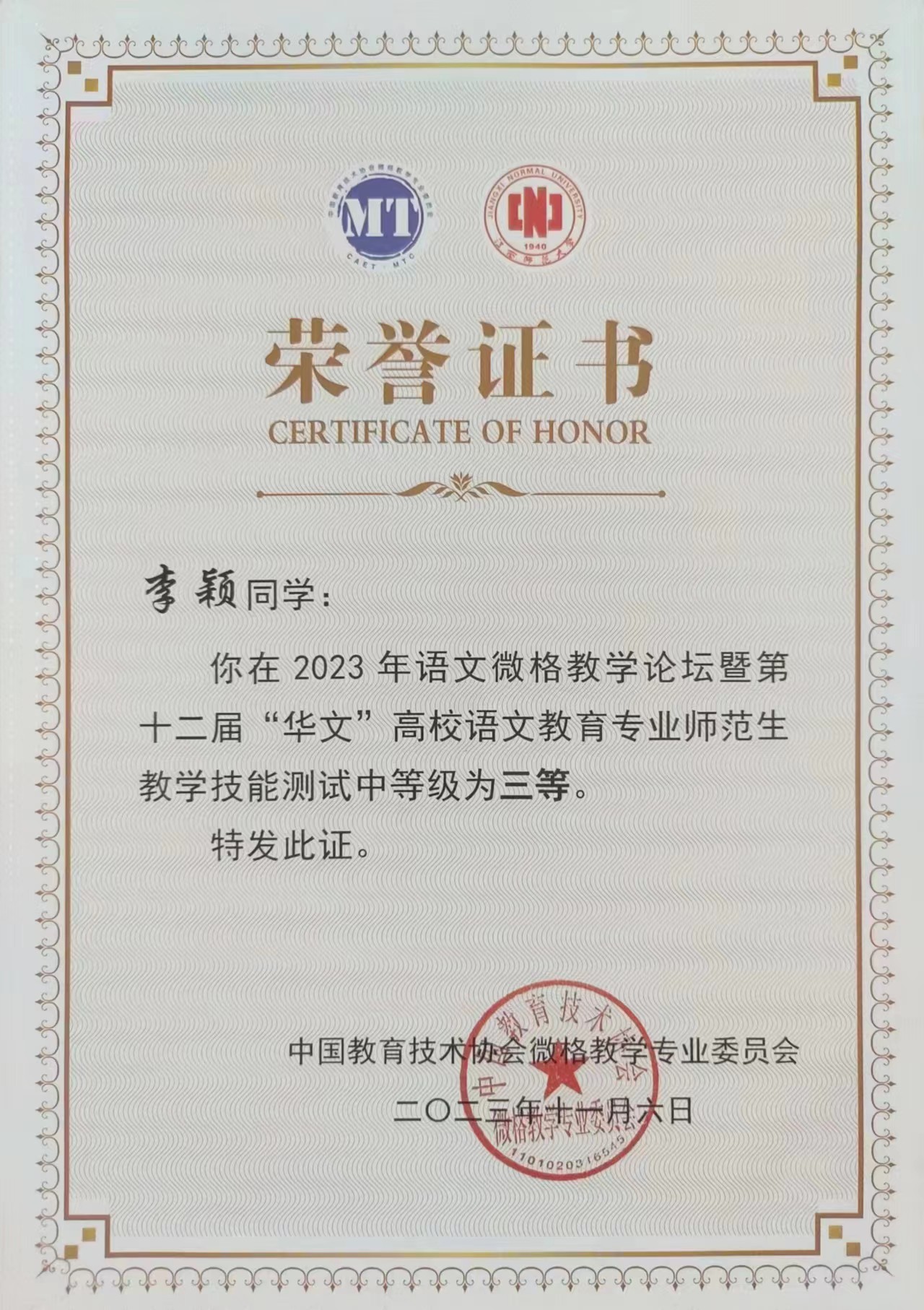 近日,第十二届“华文”高校语文教育师范生教学技能测试与交流展示活动在江西师范大学落下帷幕。公司英国365集团官网员工在教学技能测试中,荣获一等奖1项,二等奖4项,三等奖1项;在教学设计能力测试中,荣获二等奖1项,三等奖5项。