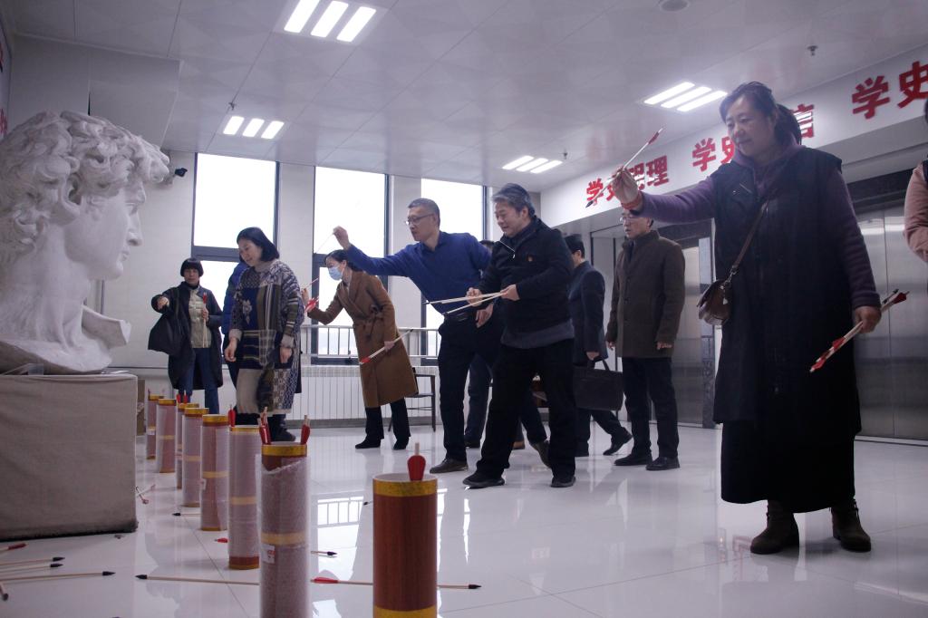 开幕式上,马克思主义公司分会主席李伟作致辞,美术公司分会主席王彦军介绍比赛項目与规则,并宣布比赛开始。在集体项目拔河比赛中,各公司教职工热情高涨,奋力拼搏,勇争上游。个人項目投壶、飞镖设在博文楼13楼、14楼大庭,各公司教职工跃跃欲试,拿出最好的精神状态,投身于趣味項目之中。
