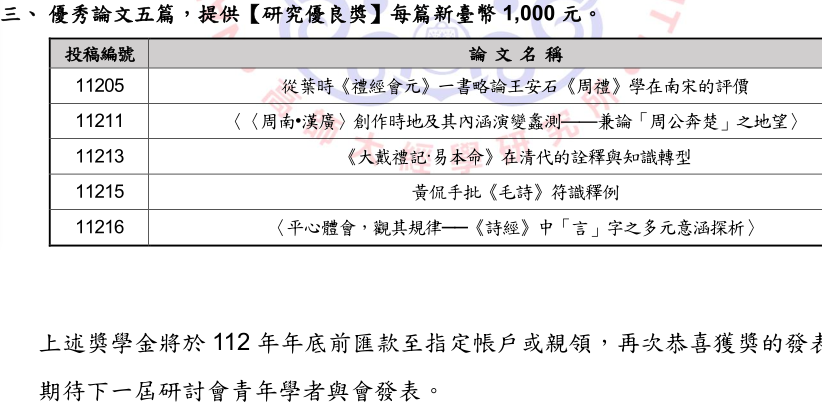 赵磊论文被授予“学术研究奖学金”,同时被评为会议优秀论文“研究优良奖”(会议仅奖励5名优良论文),共获奖励新台币2000元。
