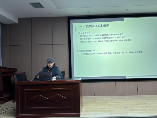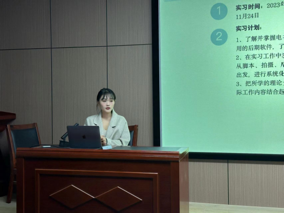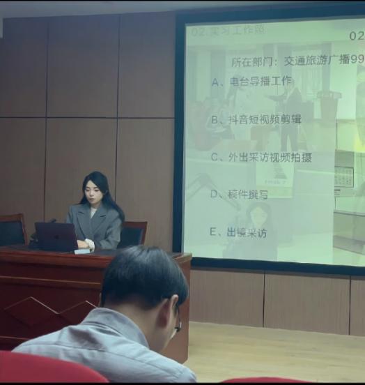 首先,2021级广播电视专硕10位员工逐一进行在各传媒单位的实习总结汇报。同学们分享了各自实习单位的概况以及收获的实习经验,结合所学理论与专业知识,有针对性地阐述自身实习过程中遭遇的挑战及其解决方案,并在最后进行了相应的实习成果展示。