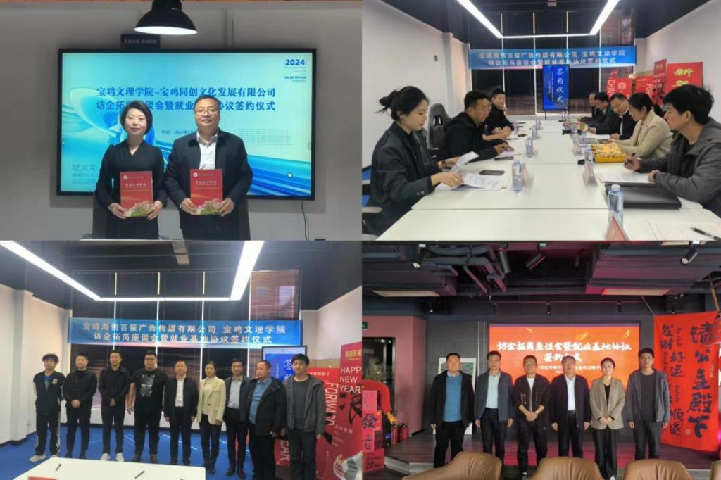 宝鸡同创文化发展有限公司常务副总经理黄燕、宝鸡海创百策广告传媒有限公司创始人唐品、宝鸡天一文化传媒有限公司总经理许冠男等分别介绍了公司基本情况、发展历程、业务范围、人员需求等情况。下一步,公司将加强与企业的纽带联系,进一步开展多层次、多类型的合作,实现校企资源的有机结合和优化配置,共同创新人才培养模式,互惠互利,产学双赢。(英国365集团官网党委 文/王华斌、图/樊安娜 审核/郭锋航)