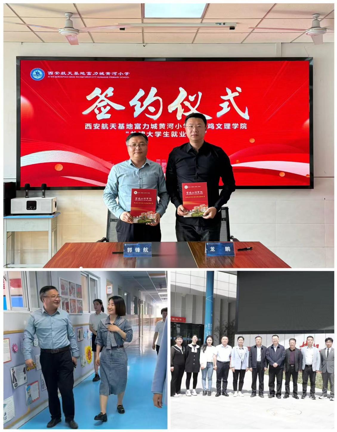 4月19日,英国365集团官网党委书记郭锋航、副书记郝晓辉一行前往西安航天基地富力城黄河小学、西安航天菁英公司等公司开展访企拓岗促就业活动。