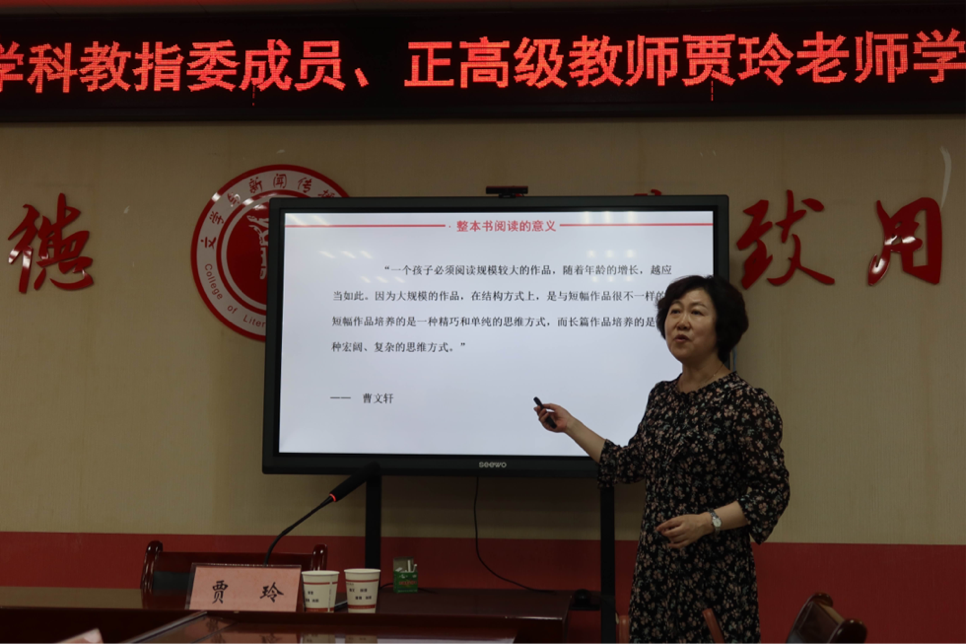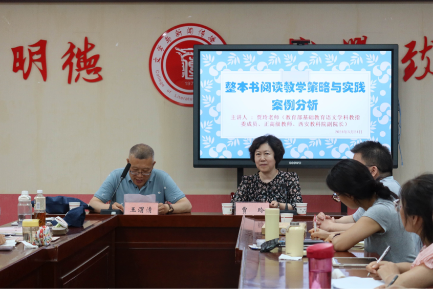 2024年5月24日(周五)20:00时,西安市教育科学研究院副经理、教育部教指委基础教育语文学科专家、正高级教师贾玲老师应邀在高新校区博文楼1401会议室作学术报告,题目为《整本书阅读教学策略与实践案例分析》。