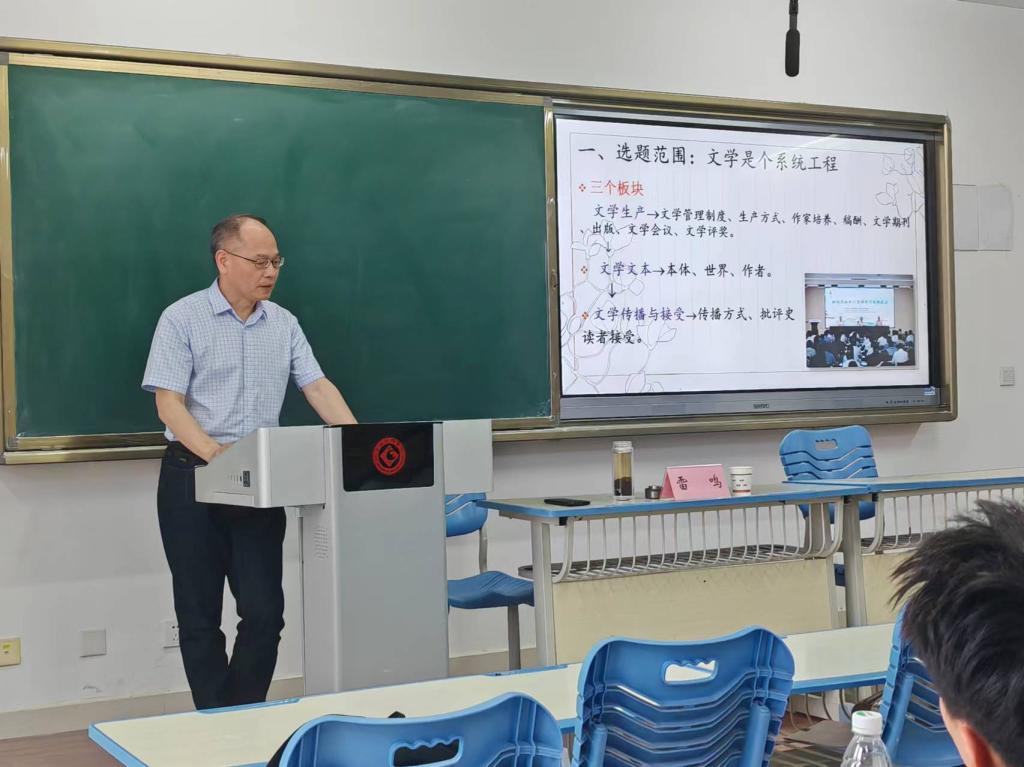 为开拓学术思维,助力论文写作,提升专业素养,2024年5月25日下午14时30分,西北大学文公司中国现当代文学专业教授雷鸣受邀为公司中国现当代文学专业师生做学术讲座。本次讲座题为“中国现当代文学论文选题方法的思考”,中国现当代文学学科带头人郭文元教授主持报告,多位中国现当代文学专业导师与研究生到场倾听。