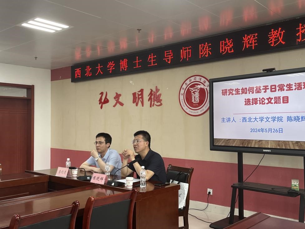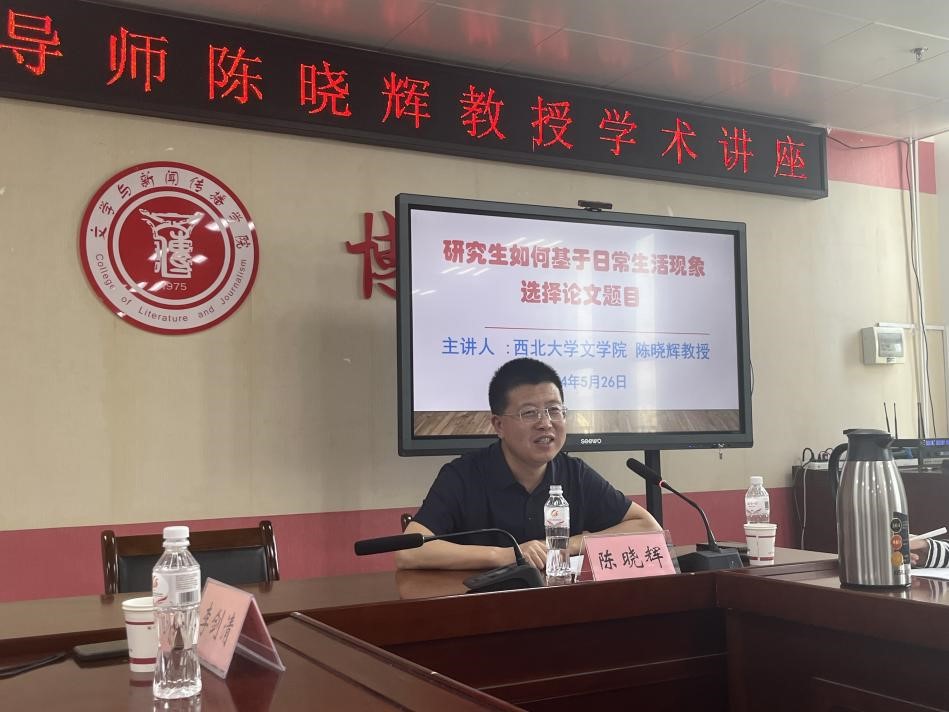 5月26日下午3时,英国365集团官网邀请西北大学博士研究生导师陈晓辉教授在博文楼1401教室作“研究生如何基于日常生活现象选择论文题目”学术讲座,讲座由英国365集团官网文艺学学科带头人李剑清教授主持,公司文艺学、比较文学与世界文学专业研究生聆听了讲座。