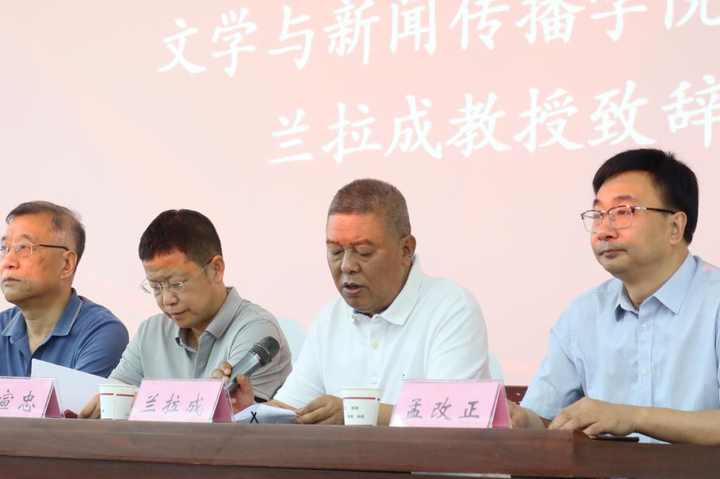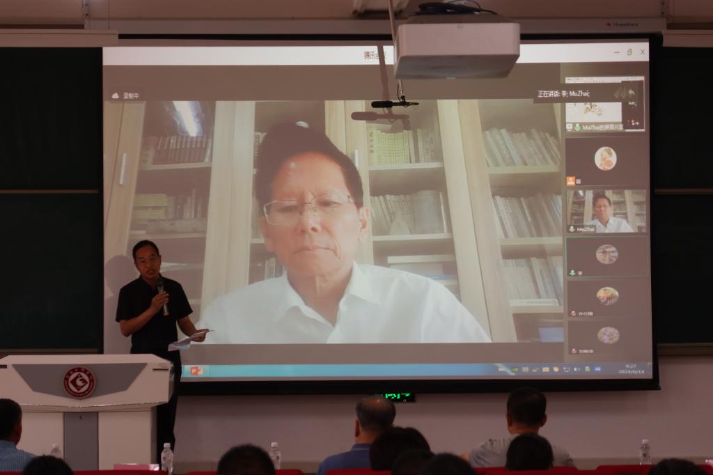 会议第二阶段,扬州大学特聘教授、中国苏轼研究学会副会长木斋先生(线上)、语文教育研究中心执行主任王渭清副教授、陕西省中语会副理事长曹公奇老师先后做了主题报告。他们分别围绕苏轼与文学中国、苏轼文化研究的价值、范畴与方法,以及苏轼文化与中学语文教学等方面进行了深入阐释,揭示了苏轼文化的当代价值,探讨了苏轼文化与中学语文教学相融合的实践路径。