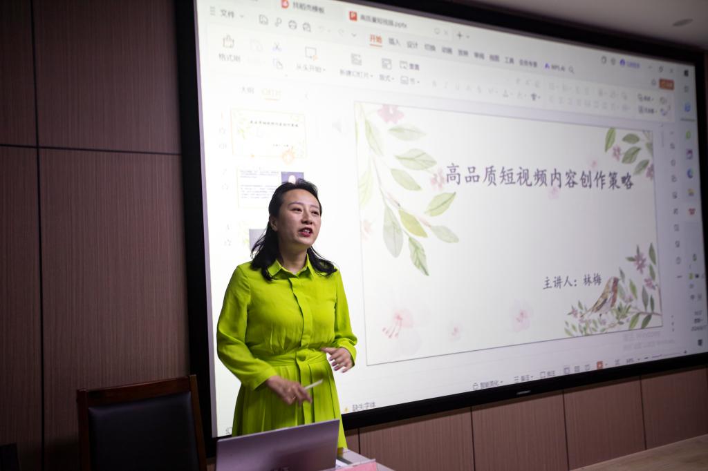 6月17日,陕西科技大公司宣传部副部长、黄河文化传播研究院执行经理林梅博士作“高质量短视频节目制作”报告。林梅博士梳理了短视频的概念、主要特点、创作手法与策略。