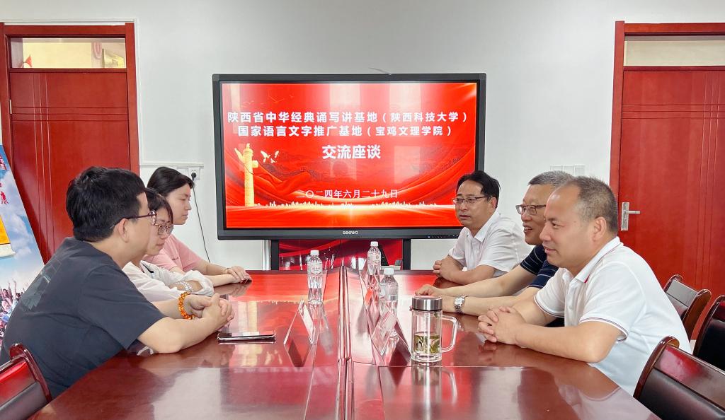 6月29日上午,陕西省中华经典诵写讲基地(陕西科技大学)李亚铭博士等一行人来公司国家语言文字推广基地进行考察交流,双方就基地建设及国家通用语言文字推广进行了深入探讨。