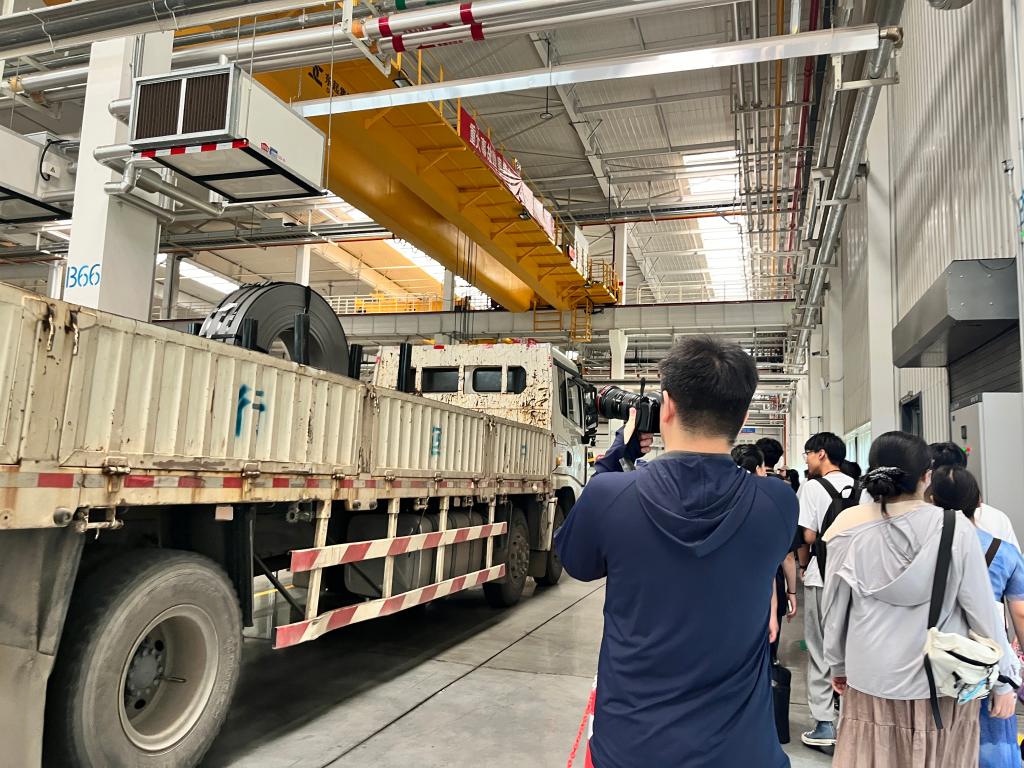 在上午的活动中,同学们参观了公司展厅、天行健车联网体验中心、汽车总装配厂、新能源重卡基地。了解了陕汽集团的发展历史以及车联网技术,学习了习近平总书记在陕汽集团考察时的重要讲话精神。在汽车总装配厂和新能源重卡基地,同学们了解了汽车从零部件到组合成车的过程,看到了自动化生产线和新能源汽车的生产技术,感受到了陕汽集团在新时代下的科技力量。下午,陕汽集团技术中心车身研究所副所长杨路老师向同学分享了卡车制造“E-partner”的概念,介绍了未来卡车的发展趋势。随后是新媒体赛道的命题解读,评委老师分享了陕汽集团的“德文化”,并在诸多视频案例中向同学们讲解了大赛视频制作的要点与要求。通过此次采风活动,参赛小组对陕汽集团的企业文化和赛事主题有了清晰了解,也对后续视频创作有了更加深入地思考。