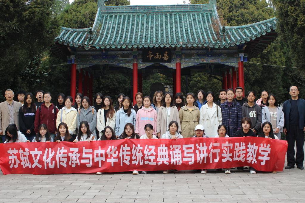 活动七:苏轼文化传承与中华传统经典诵写讲行实践教学。11月2日,40名师范生赴凤翔东湖开展苏轼文化传承与中华传统经典诵写讲行实践教学活动。在喜雨亭前,全体师生集体诵读《喜雨亭记》。在“即以名亭,又从而歌之”的朗朗书声中,大家深刻体会了作品中的人文情怀和苏轼执政为民、与民同忧乐的高尚精神。同学们纷纷表示,作为新时代师范生,在今后的学习中要明确责任与担当,积极主动学习本领,为祖国教育事业添砖加瓦。