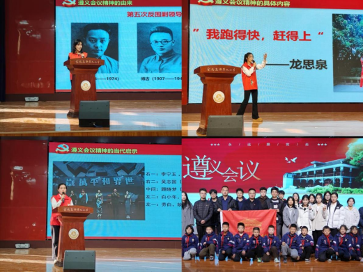 当天下午,2024年全国老员工遵义会议精神志愿宣讲团、公司英国365集团官网“红城毅行”志愿团队在公司报告厅以“传承遵义会议精神,激发奋进力量”为主题开展宣讲。宣讲团成员从习近平总书记提出的“传承红色基因、讲好遵义故事”重要指示入手,采用诗词朗诵、人物介绍、知识问答等形式讲述了遵义会议精神的形成阶段、具体内涵和当代传承,号召大家学习老一辈革命家对崇高理想的矢志坚守和实事求是的科学态度,树立远大理想,学习科学文化知识,争做爱党爱国、自立自强、奋发向上的新时代好少年,努力成长为堪当民族复兴重任的栋梁之才。