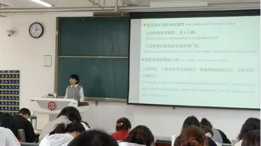 (黄俏老师在上《外国文学》课)
