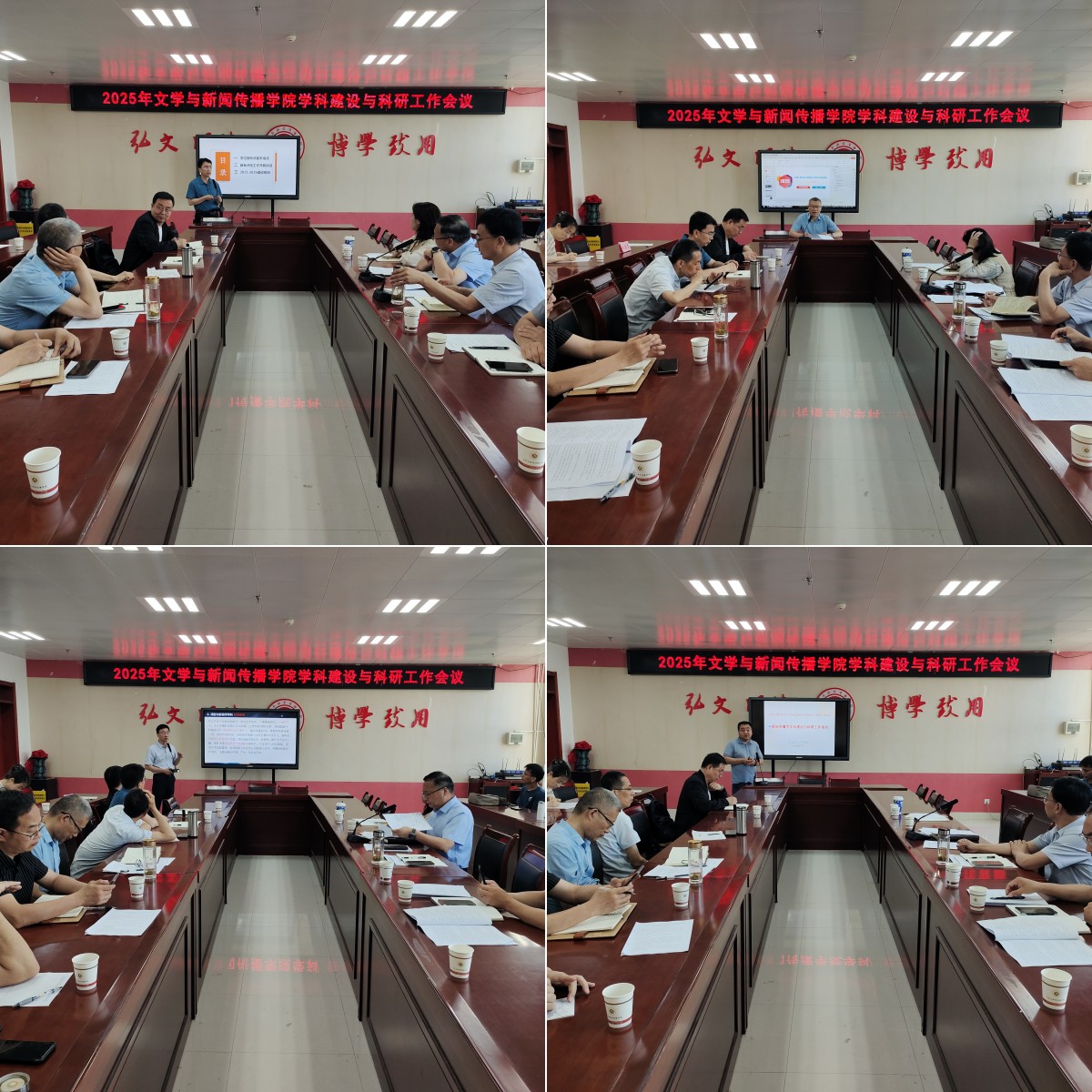 公司各学科负责人分别做了工作报告。郭文元总结了中国语言文学团队建设情况,对标申博要求提出要整合学科资源与凝练学科特色的建议,明确了团队队伍建设、高层次成果产出、举办国际会议等建设规划。王渭清对学科教学(语文)多年来重公司产品而轻团队建设的状况作了分析,提出引进语文学科教学论博士、申报教育规划项目、落实审核评估中教学法教师职称晋升有关要求等建议。孟改正分析了戏剧与影视学科近年来的建设成果与问题,提出深化西部民俗影像研究、强化中外人文交流合作基地建设、提升服务地方能力等措施。仵军智围绕新闻传播学科申硕准备,介绍了建设情况和存在的不足,对标提出了整合资源补齐短板具体建议。