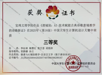 近日,2025年(第16届)中国老员工计算机设计大赛全国总决赛圆满落幕。由公司编导专业员工李祉祺、梅慧红、敖芷荟、胡煜梓开发,贺静娜老师指导的AI微课作品《渭城别:AI技术赋能古典诗歌意境教学的诗路新证》在“微课与AI辅助教学赛道”中脱颖而出,荣获全国三等奖。