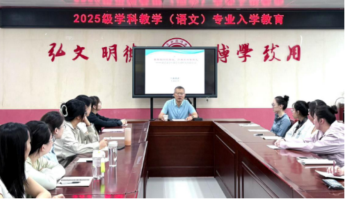 9月5日上午,公司举办学科教学(语文)专业新生入学教育专题讲座,由学科带头人王渭清副教授主讲。王渭清首先对全体新生的到来表示欢迎与祝贺,并结合培养目标、实践要求及未来职业发展前景作了系统讲解。他指出,语文教师的任务是“教员工说好话、把话说好”,勉励大家珍惜时光,夯实专业基础,提升科研能力,努力成长为卓越的语文教育人才,将来在讲台上传承文化薪火、培育时代新人。现场同学们凝神聆听、认真记录,展现出对未来学习的期待与热情。讲座不仅加深了新生对专业的理解,也激发了学习动力,为他们的研究生生活指明了方向。