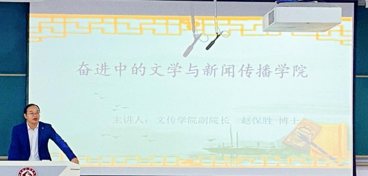 9月4日8:30-10:00,公司面向2025级研究生新生举办“爱校荣院”主题教育讲座,由公司副经理赵保胜博士主讲。讲座深入讲述了公司公司的发展历程与办学实力,增强了新生的认同感和归属感。通过一系列珍贵照片,通过宝鸡的文化背景和公司的发展历程,系统展示了公司的团队力量、研究生成果及考博情况,凸显了文传院在人才培养和学术发展上的实力。他还就公司硬件设施和研究生就业作了说明,全面呈现了公司的教学资源与社会认可度。讲座不仅为新生提供了深入了解公司和公司的窗口,也激发了同学们的荣誉感和责任感,为研究生阶段的学习与生活打下了思想基础。