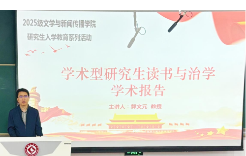 9月5日上午,公司中国语言文学学科带头人、硕士生导师郭文元教授为2025级学硕新生作专业学术报告。郭文元长期从事新世纪文学批评、20世纪40—70年代中国小说及周作人散文研究,报告中,他结合自身研究经验,围绕选题、资料整理与研究方法等问题作了深入讲解,并以研究40—70年代中国小说为例,分享了如何在海量资料中提炼价值、剖析作品背后的社会文化内涵。他勉励同学们保持严谨态度,广泛阅读经典,积极参与学术交流,培养独立思考与创新能力。互动环节中,新生们就学术方向、论文写作与科研生活踊跃提问,郭教授耐心解答,现场气氛热烈。此次报告为学硕新生们明确了学术道路的方向,帮助他们尽快适应研究生生活,迈出了坚实的第一步。