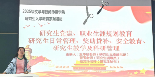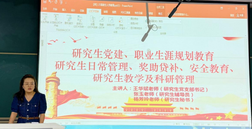 9月5日上午8:30-10:00,公司研究生秘书杨芳玲、研究生辅导员张玉为全体新生们带来了一场主题鲜明的教育讲座,内容涵盖“研究生日常管理、教学与科研管理、奖助贷补、职业生涯规划等方面。