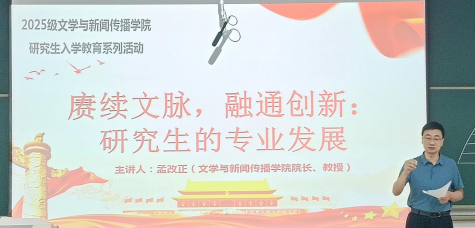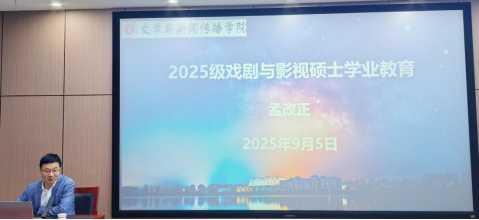 9月5日上午,经理孟改正教授为2025级戏剧与影视专业硕士研究生新生开展了本专业方向的入学教育讲座,围绕学业规划、专业认知与成长发展等内容进行讲解。他结合学科特点,从学习方法、科研素养和实践能力培养等方面提出具体建议,鼓励新生主动适应学术环境,积极参与课题研究与创作实践,拓展学术视野。并强调要注重理论联系实际,在戏剧、影视与新媒体融合发展的背景下,关注行业动态与技术变革,善于利用多种媒介形式进行艺术表达与创新。现场气氛热烈,新生们纷纷表示将珍惜时光、努力提升自我,为未来的学术研究和行业实践做好准备。