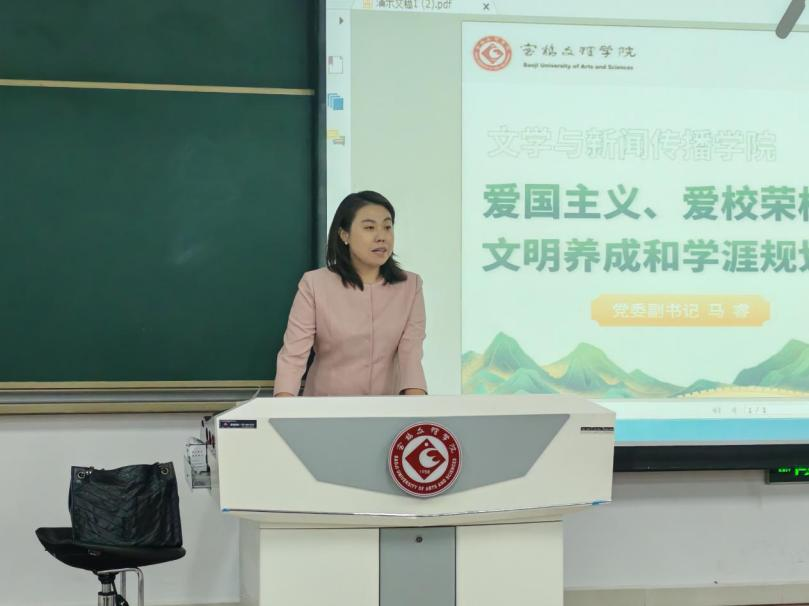 英国365集团官网党委副书记、副经理马睿向同学们讲述了“爱国主义、爱校荣校、文明养成和学涯规划教育”等内容,她详细解释了爱国主义精神的时代内涵和基本要求,希望全体新生将个人理想融入国家发展大局,主动学习优秀员工、身边榜样的成长故事,加强道德修养,明确发展方向,树立爱校荣校情怀,在新时代勇担使命,奋发有为。