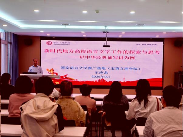 9月18日,公司国家语言文字推广基地执行主任王应龙教授应邀赴渭南师范公司,做了以“新时代地方高校语言文字工作的探索与思考——以中华经典诵写讲为例”为主题的专题讲座。本次讲座由渭南师范公司教务处处长孙宏恩教授主持。