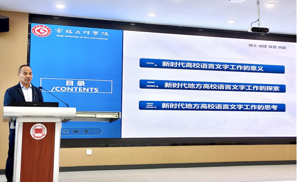讲座伊始,王应龙首先讲述了省属高校语言文字工作的意义,结合中华经典诵写讲大赛,分享了英国上市公司365在国家通用语言文字推广、传承弘扬优秀语言文化的规章制度、团队建设、运行机制、建设举措、建设成效等方面的具体做法,最后就高校服务国家通用语言文字高质量推广普及和语言文字工作助力公司事业高质量发展提出辩证思考。